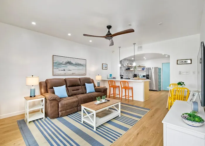 Die Gäste dieser Unterkunft in Carlsbad können ihre eigenen Mahlzeiten in einer kompletten Küche zubereiten. Das Restaurant Bob's Steak & Chop House, wo amerikanische Gerichte serviert werden, ist in 350 Meter Entfernung von der Villa in Carlsbad. Der nächstgelegene Flughafen ist McClellan-Palomar, der 10 km von dieser Villa entfernt liegt.